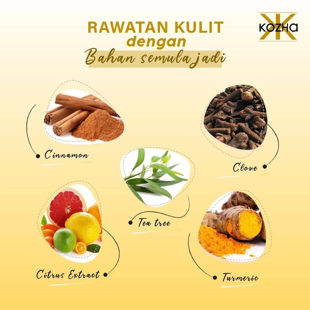 KELEBIHAN SABUN KOZHA -Made in Turkey -Diperbuat dari bahan semula jadi -Bebas paraben dan sulfate -Boleh merawat masalah gatal tubuh badan, jerawat muka, jerawat badan, kulit berminyak -Disarankan oleh Doktor Perubatan -Selamat digunakan dan lulus KKM KANDUNGAN SABUN KOZHA -Cengkih -Kunyit -Sitrus -Tea Tree Oil -Kulit Kayu Manis